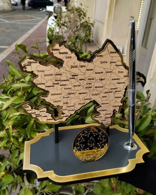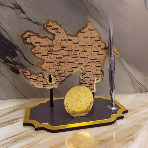 Bu stolüstü nabor, Azərbaycan xəritəsi formasında hazırlanmışdır və milli məkan dekoru üçün ideal bir seçimdir. Yüksək keyfiyyətli materiallardan hazırlanmışdır və ofisinizə, evinizə və ya iş yerinizə milli bir atmosfer qatır. Həm dekorativ, həm də funksional istifadə üçün nəzərdə tutulmuşdur. Azərbaycan sevgisini ifadə etmək üçün mükəmməl bir hədiyyə seçimi!