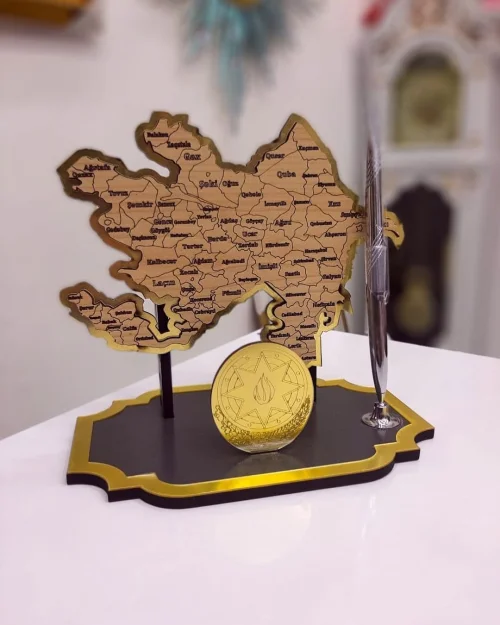 Azərbaycan xəritəsi formasında stolüstü nabor. Milli məkan dekoru üçün unikal və zərif seçim!