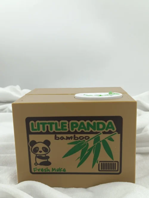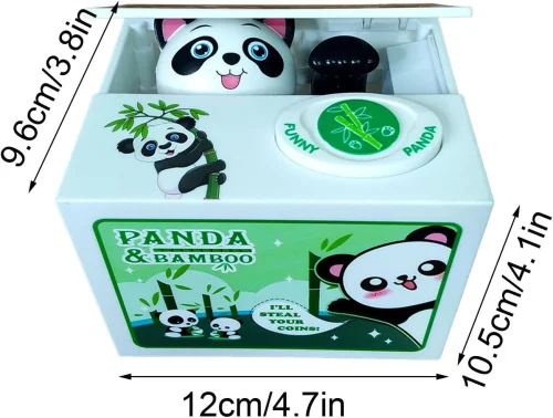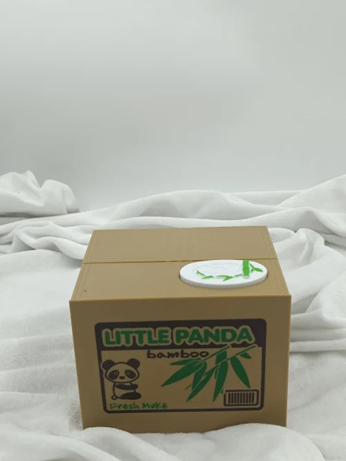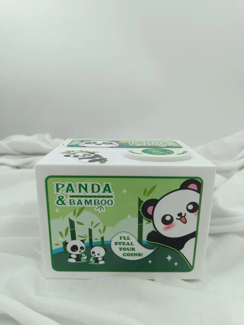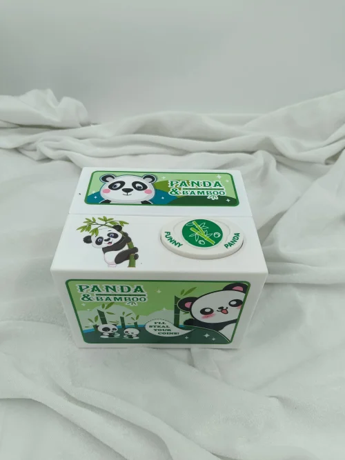 Bu panda kassa, əyləncəli dizaynı və funksionallığı ilə diqqət çəkir. Qəpiki qutusunun üzərinə qoyduqda, panda avtomatik olaraq qapağı açır və qəpiki içəri alır. Bu, uşaqların qəpik yığmağı öyrənməsi üçün əyləncəli bir üsuldur.