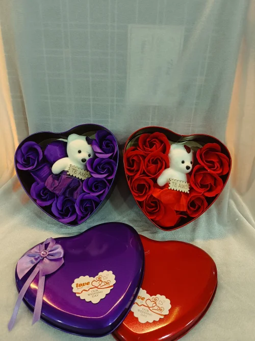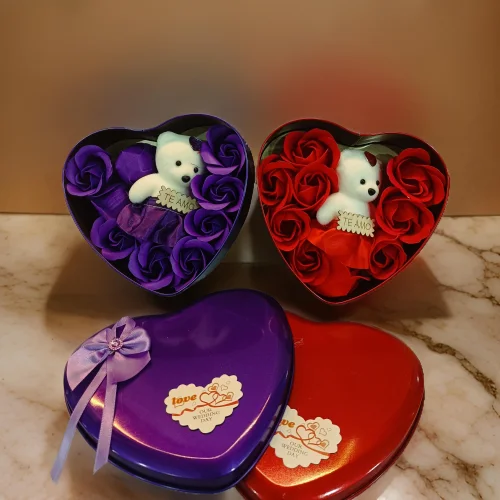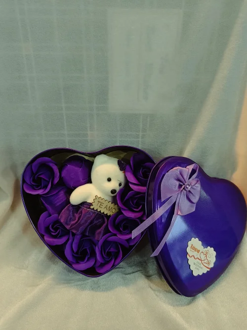 Bu hədiyyə dəsti, sevimli bir ayıcıq və ürək şəkilli qutu içərisində süni güllər ilə təqdim olunur. Ayıcıq, istilik və rahatlıq hissi verir, süni güllər isə əbədi məhəbbəti simvollaşdırır.