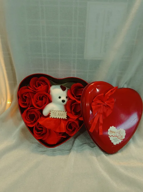 Bu hədiyyə dəsti, sevimli bir ayıcıq və ürək şəkilli qutu içərisində süni güllər ilə təqdim olunur. "Səni Sevirəm" etiketi ilə sevdiklərinizə məhəbbətinizi ifadə edin.