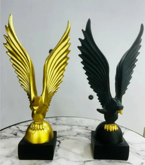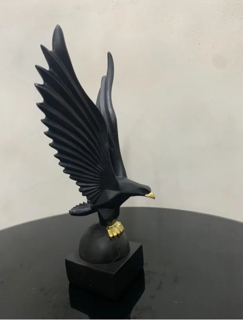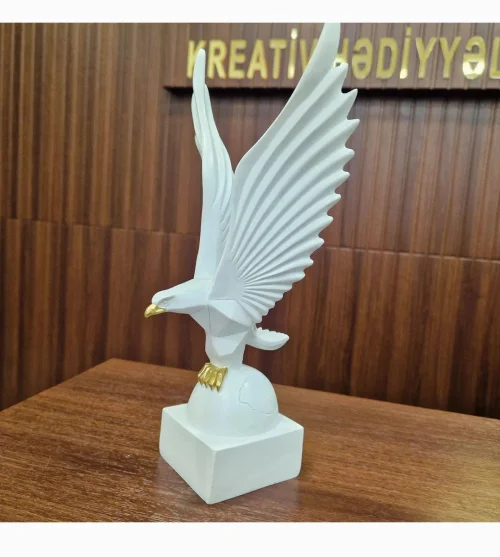 Bu qartal fiquru, resin materialından hazırlanmış və müasir dizayna sahibdir. Ev, ofis və ya otel dekorasiyalarında istifadə üçün uyğundur. Qızıl, qara və ağ rəng seçimləri ilə fərqli interyerlərə uyğunlaşır.