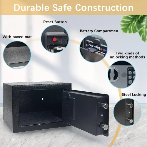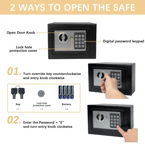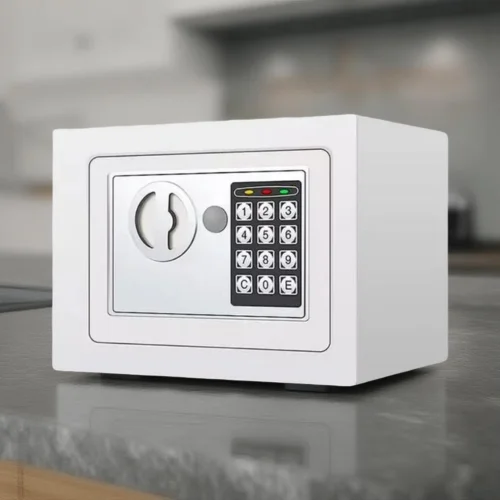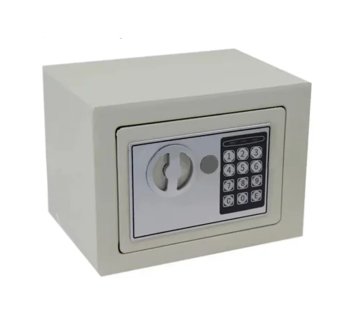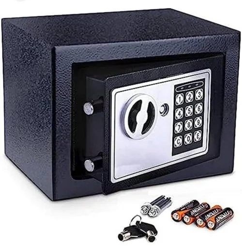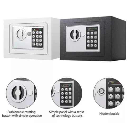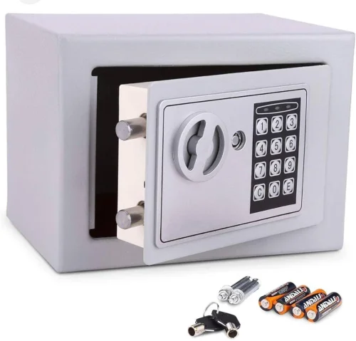 Dəyərli əşyalarınızı (pul, zinət, sənəd) etibarlı şəkildə qorumaq üçün kompakt dəmir seyf. Həm rəqəmsal kod, həm də açarla asan istifadə imkanı. Ev, ofis və ya otel üçün idealdır.